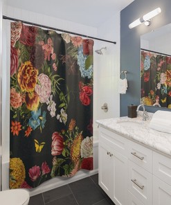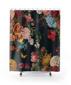 Vintage Style Floral Shower Curtain, Vintage Inspired Flowers Shower Accessory, Retro Bathroom Curtain, Botanical Tub Curtain, Backdrop