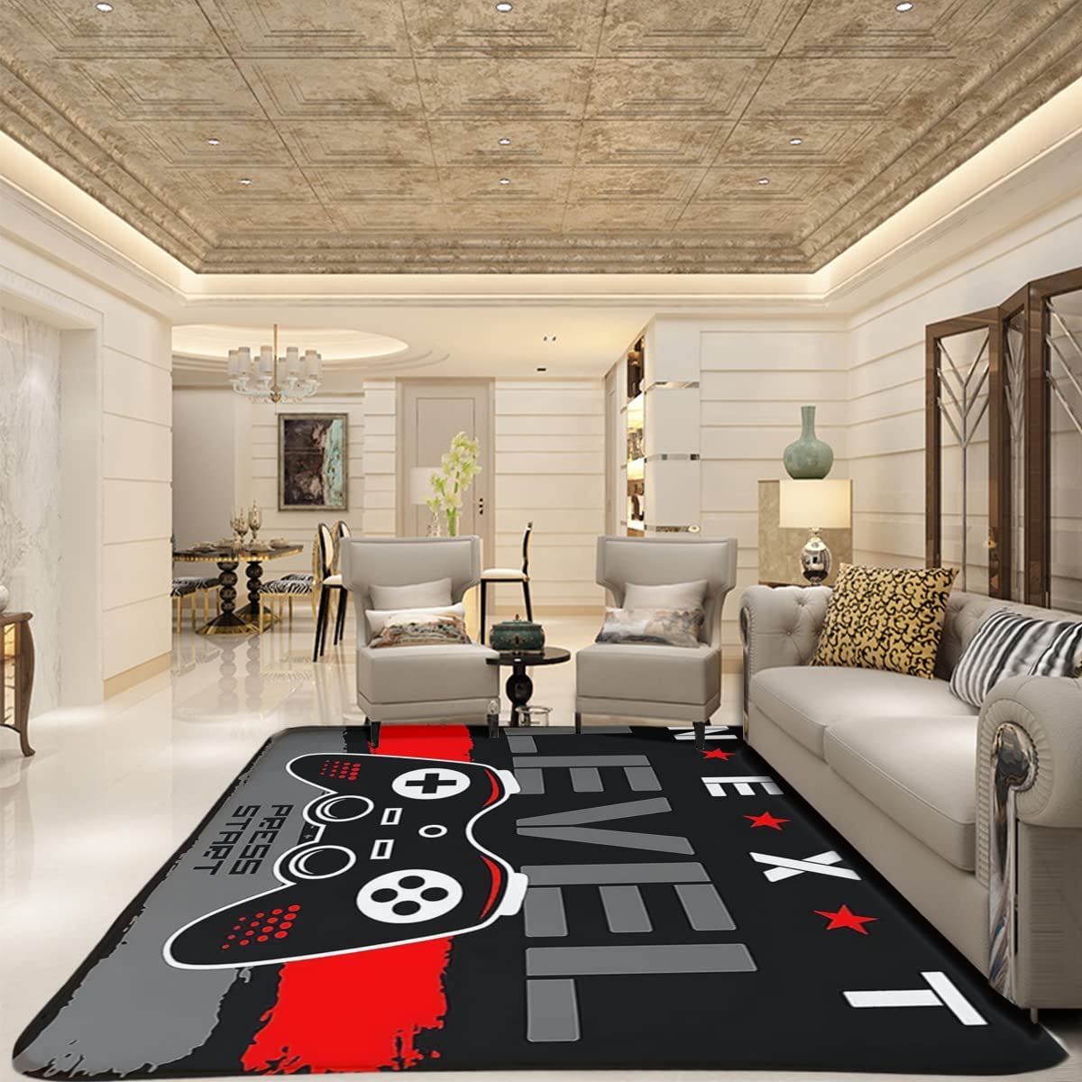 Washable Gaming Room Decor Rug for Video Gamer Area in Bedroom and Living Room