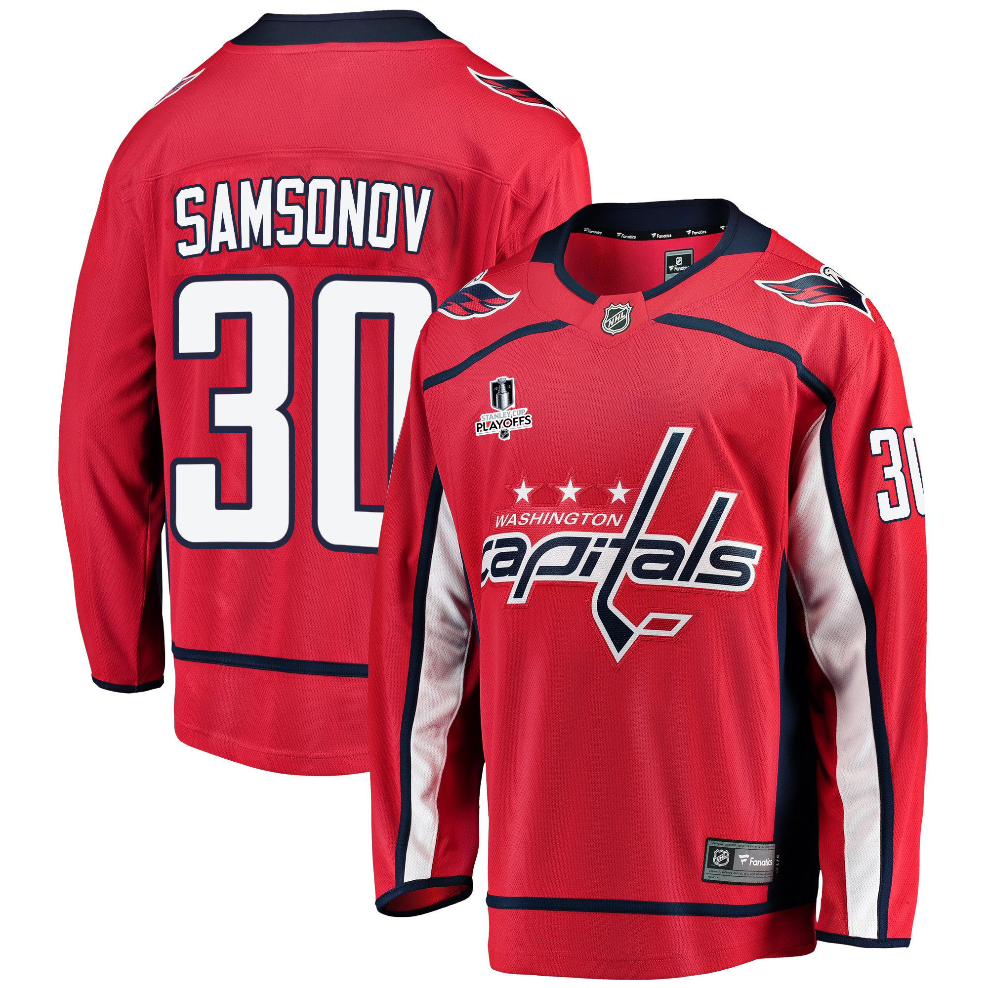 Washington Capitals Ilya Samsonov 30 Home 2022 Stanley Cup Playoffs Breakaway Men Jersey – Red
