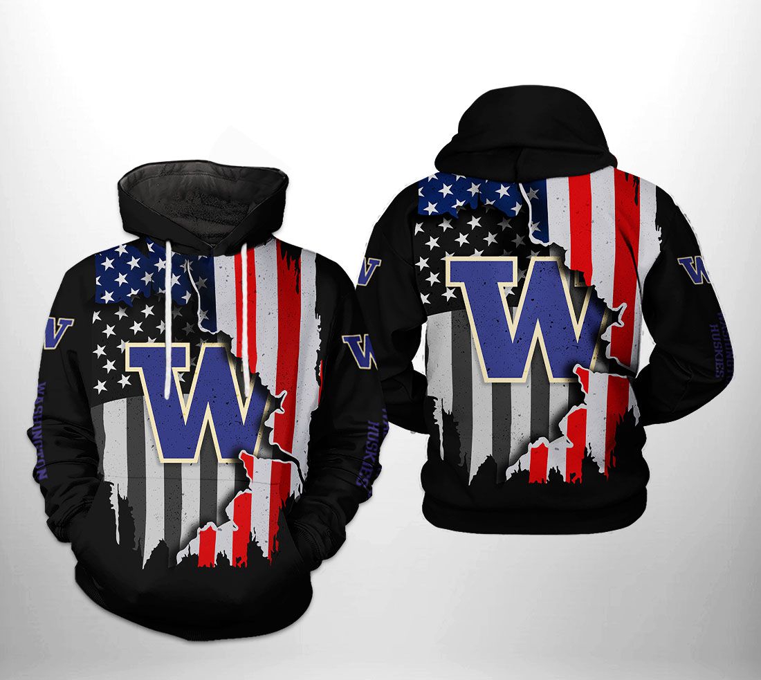 Washington Huskies NCAA US Flag 3D All Over Print Hoodie, Zip-up Hoodie