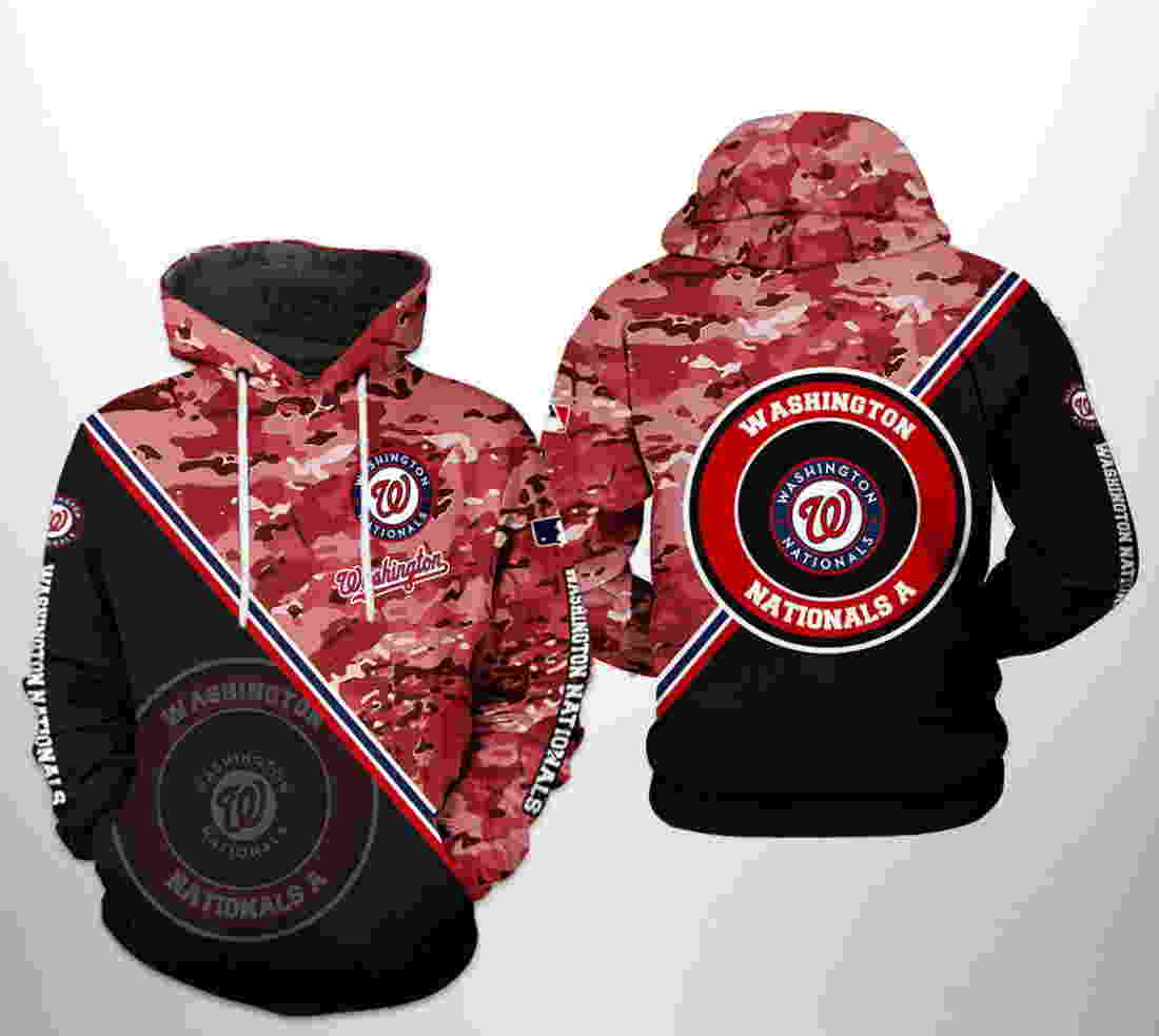 Washington Nationals MLB Camo Team 3D Hoodie Zipper Hoodie