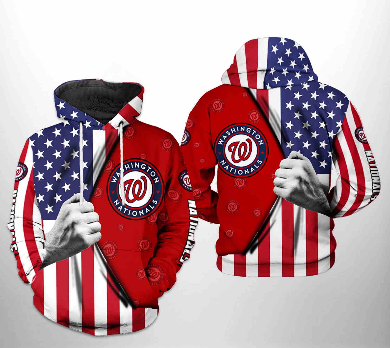 Washington Nationals MLB US Flag 3D Hoodie Zipper Hoodie