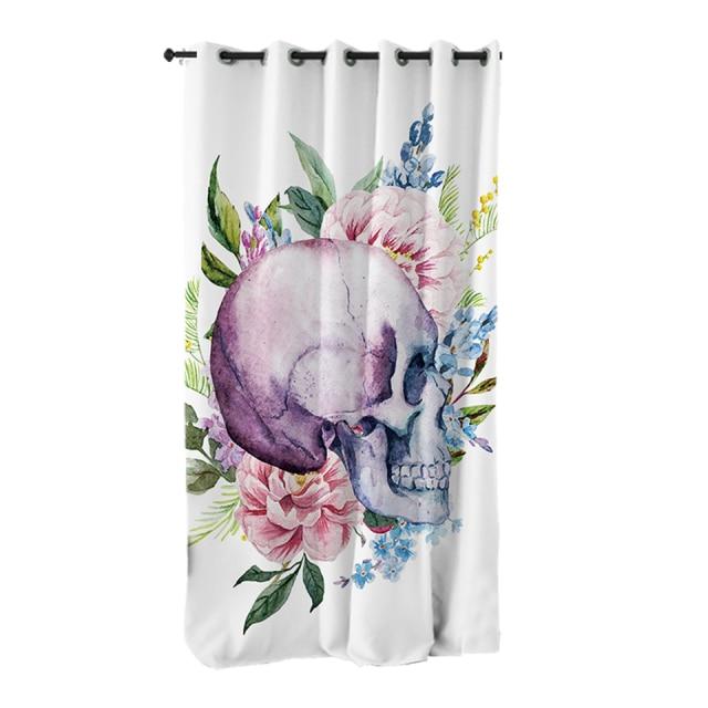 Watercolor Floral Skull Blackout Curtain