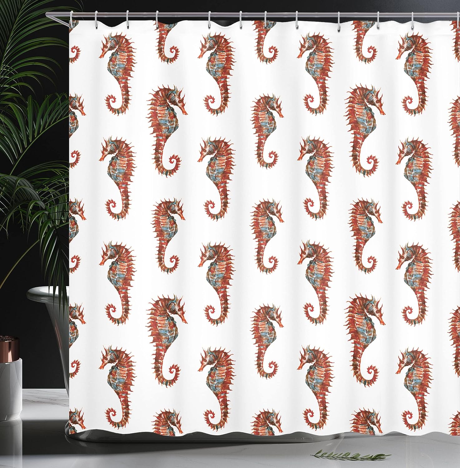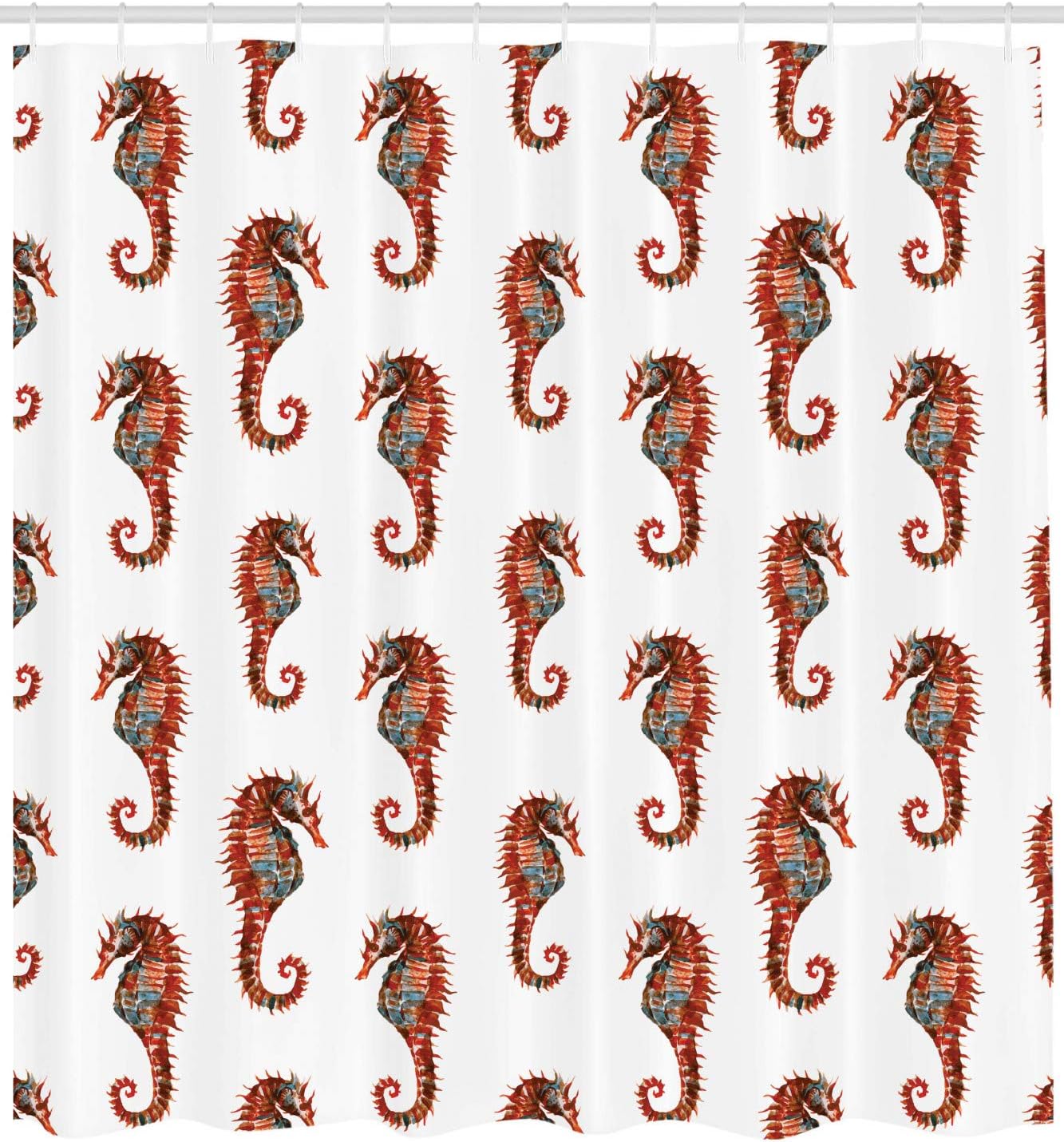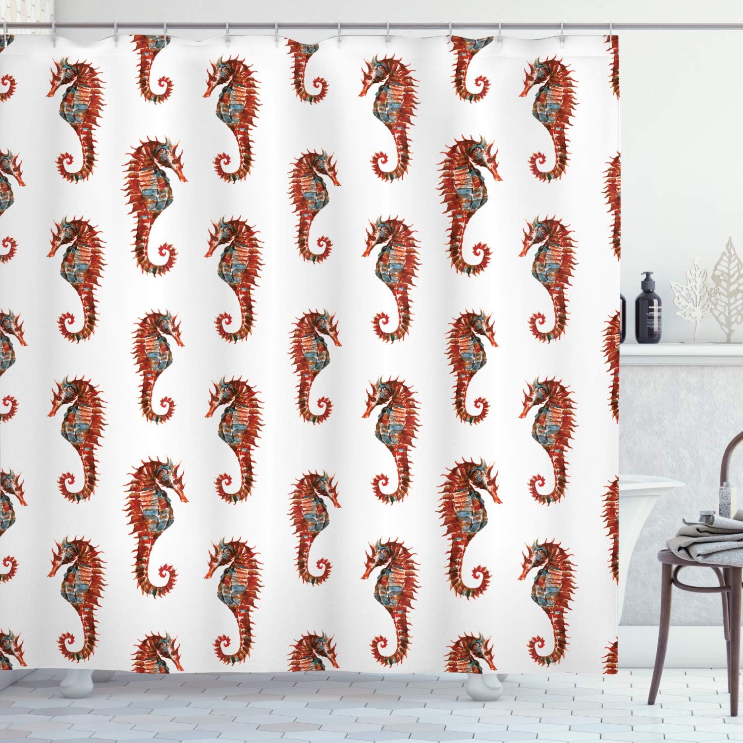 Watercolor Seahorse Shower Curtain, Beautiful Nature Inspired Cloth Bathroom Decor in Grey and Red