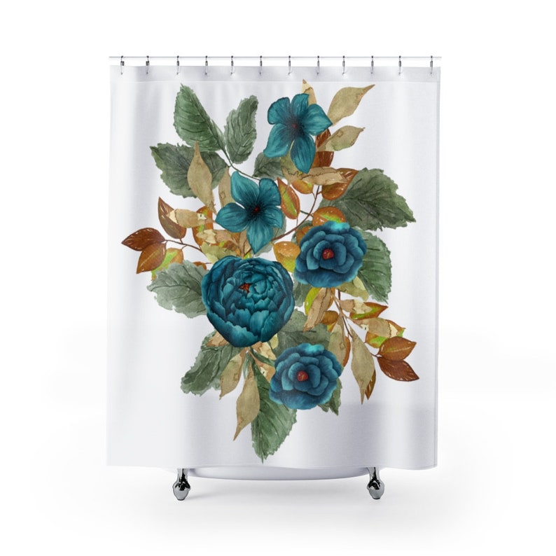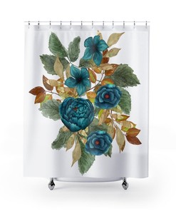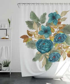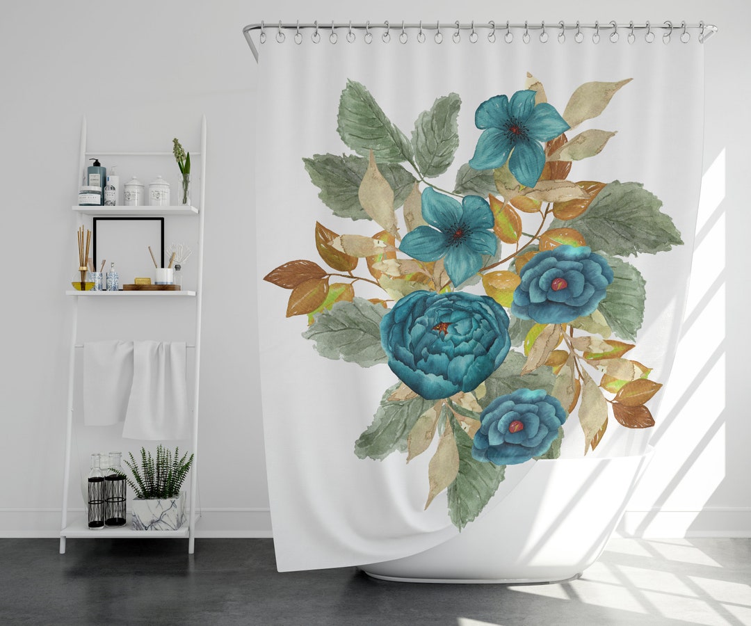 Watercolor Wild Blue Flowers Floral Shower Bath Curtain, Wild Blue Rosex Curtain