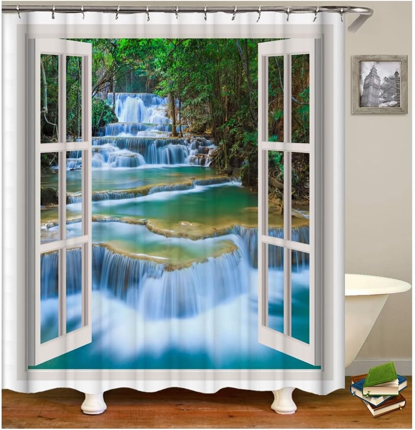 Waterfall Pattern Shower Curtain – Natural Bathroom Decor