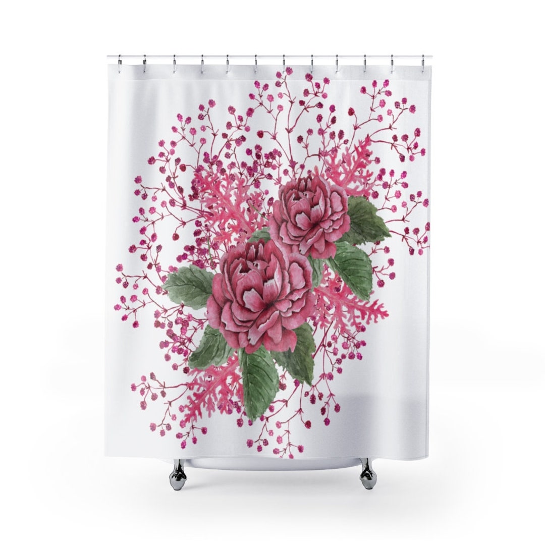 Wild Roses Flowers Floral Bath Curtain, Pink Roses Shower Curtain, Wild Flowers Bathroom Decor, Watercolor Shower Curtain