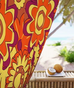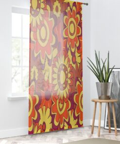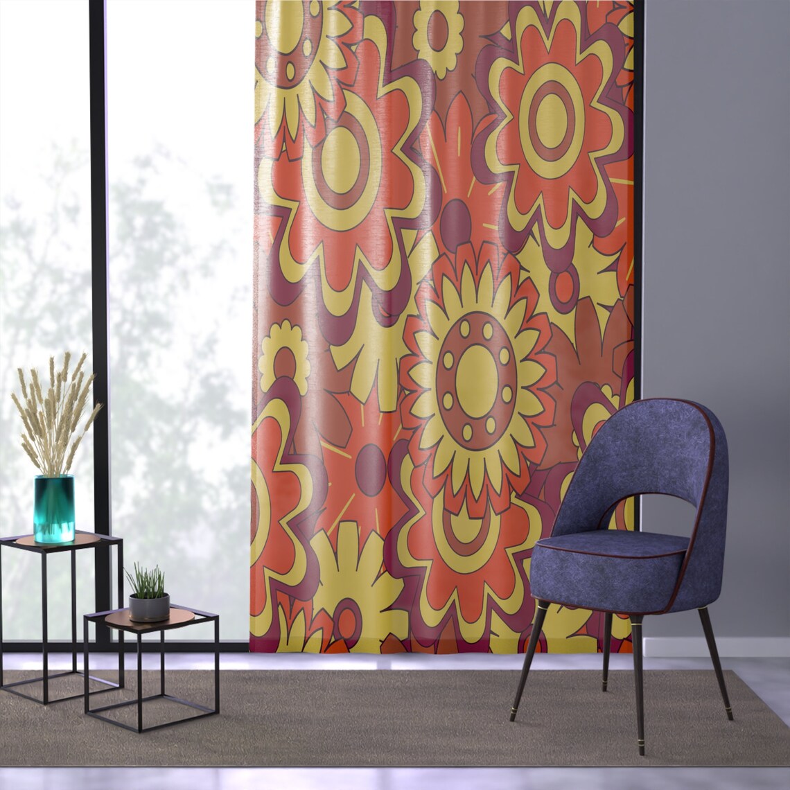 Window Curtains in Mid Century Modern Groovy Hippie Retro 60s, 70s Flower Power, MCM Burnt Orange Floral Blackout Curtain Panel