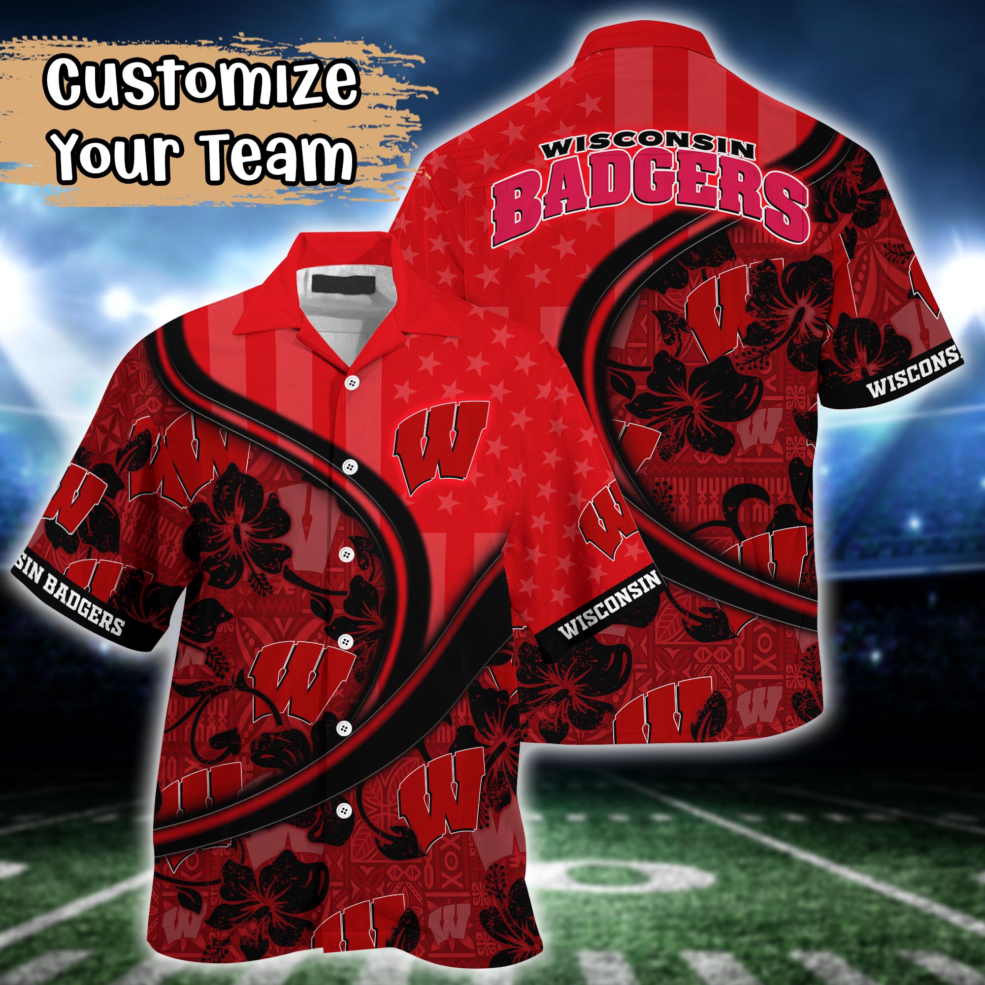 Wisconsin Badgers NCAA US Flag Flower Hawaii Shirt For Fans