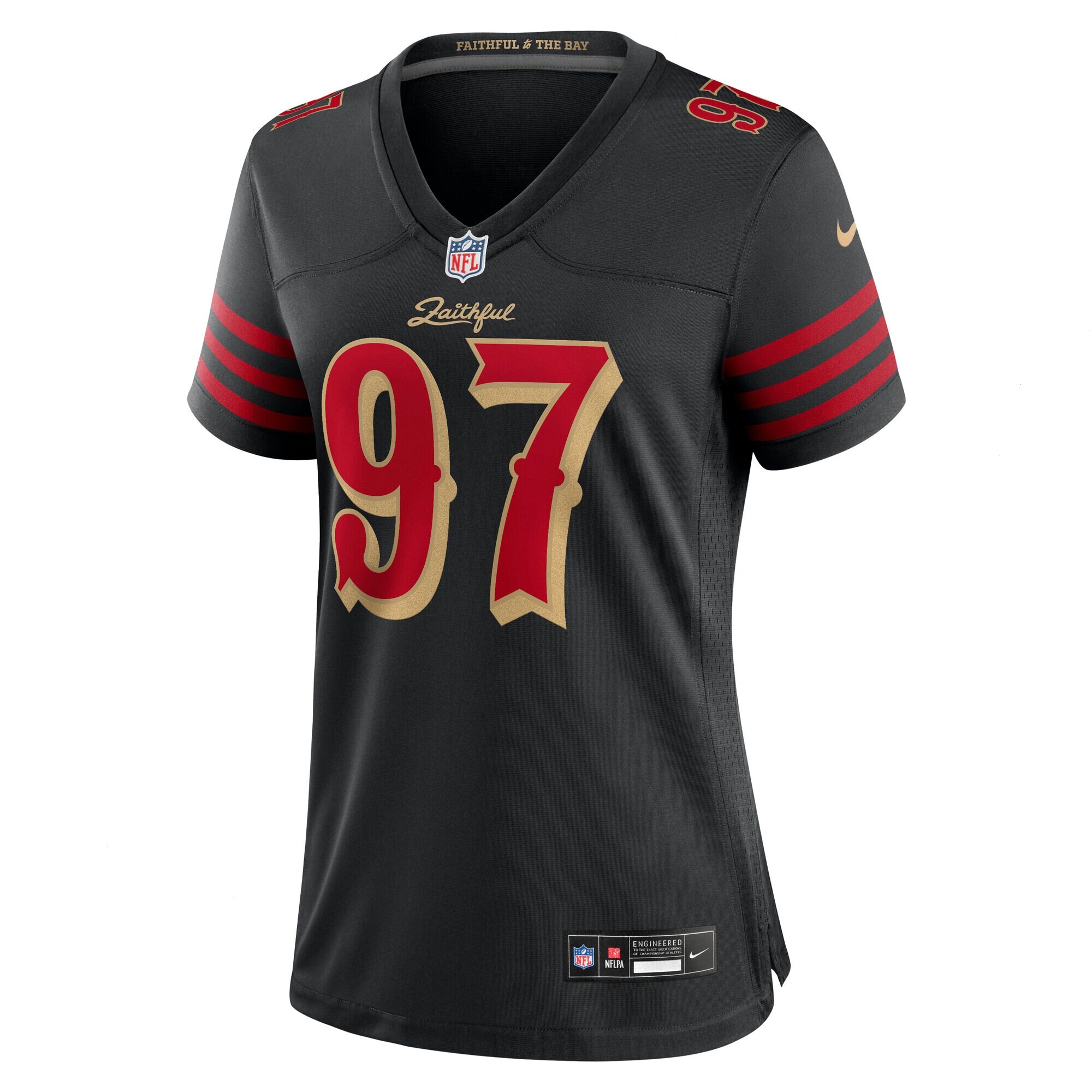 - LIKE A FAMILY: Printed lettering at the back neck and chest pays tribute to Niners fans everywhere.