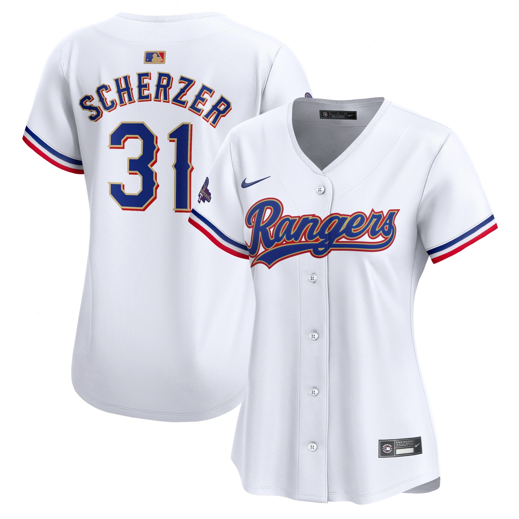 Women’s Texas Rangers Max Scherzer Nike White 2024 Gold Collection Limited Player Jersey