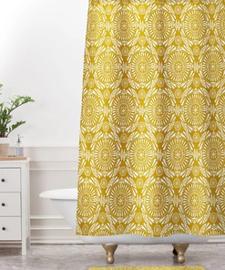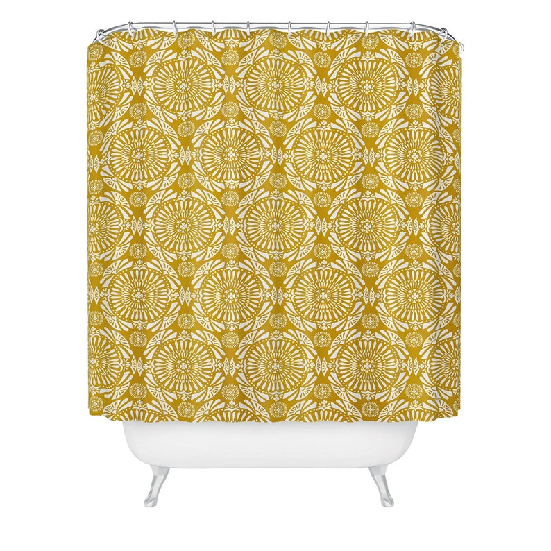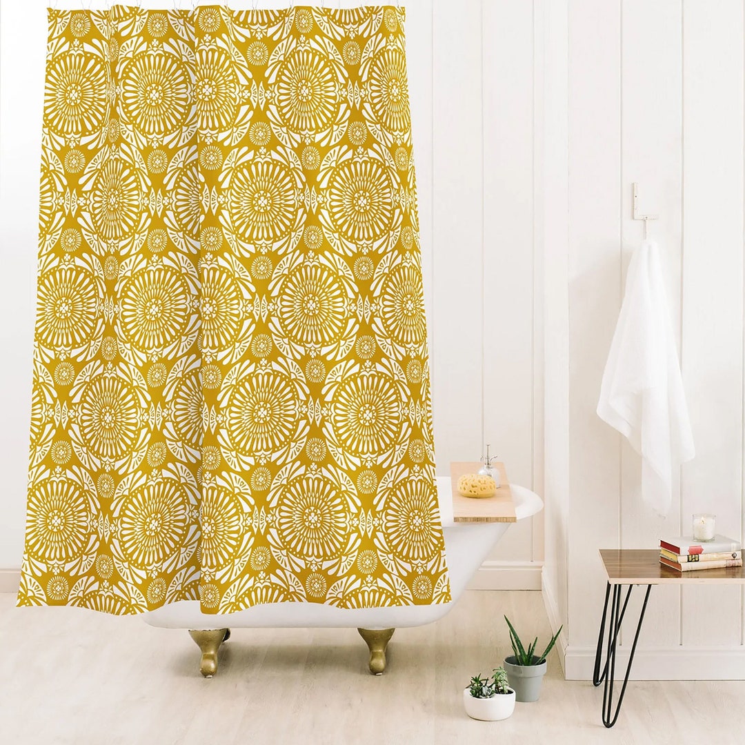 Yellow Shower Curtain, Boho Medallion Geometric Shower Curtain, Bath Curtain, Bathroom Decor