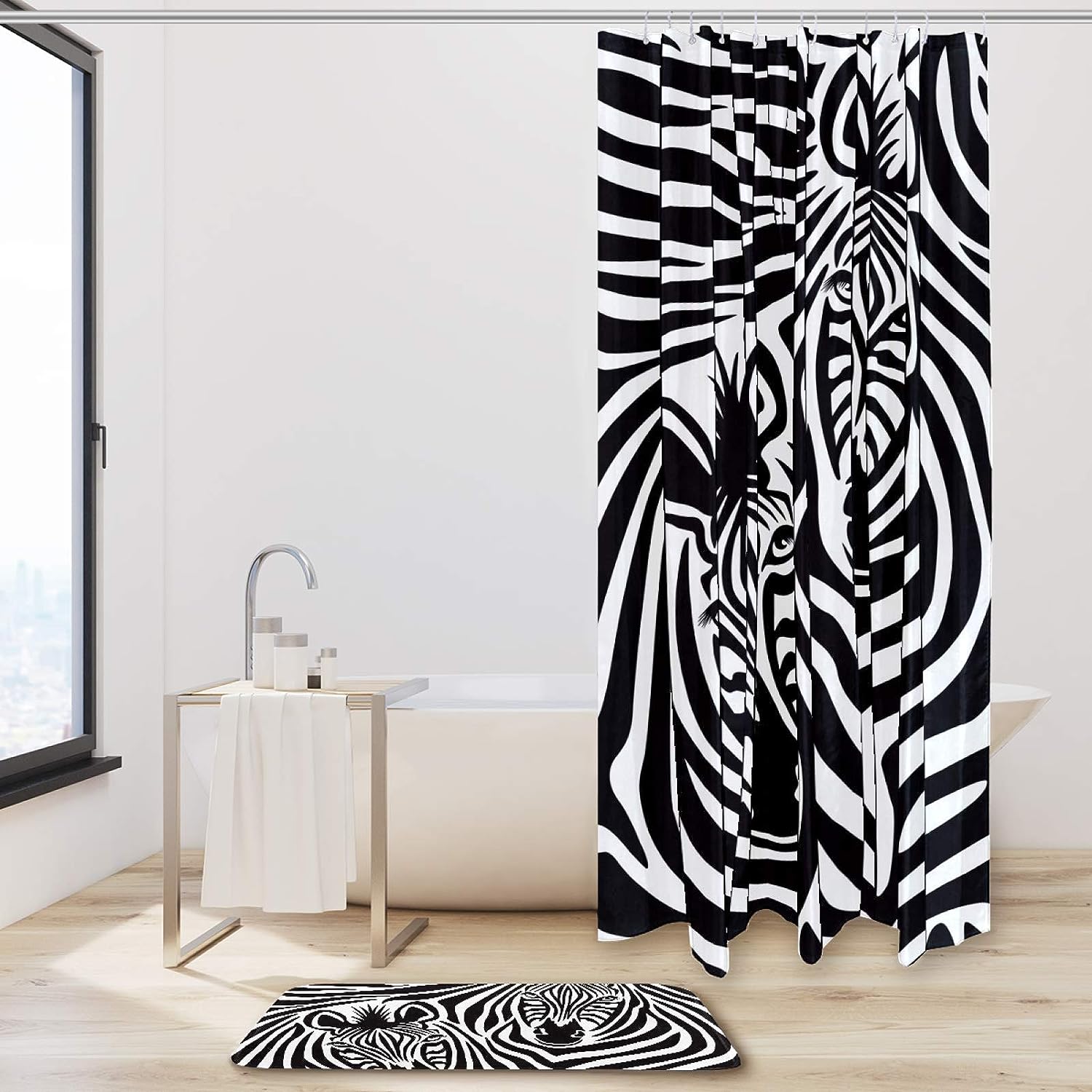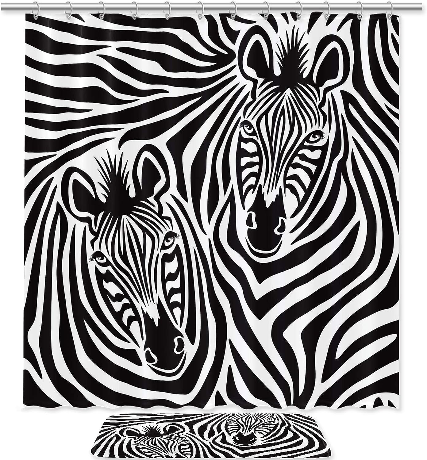 Zebra Couple Fabric Bathroom Shower Curtain – Durable Waterproof Bath Curtains