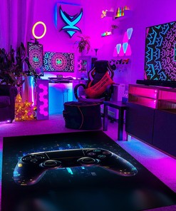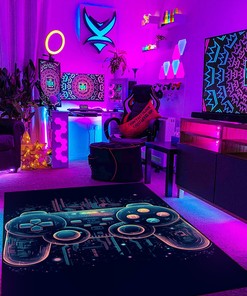 Custom Gamer Rug for Bedroom with Personalized Game Controller Design