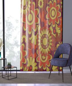 Window Curtains in Mid Century Modern Groovy Hippie Retro 60s, 70s Flower Power, MCM Burnt Orange Floral Blackout Curtain Panel