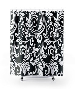 Black White Damask Shower Curtain, Vintage Style Shower Curtain, New Home Housewarming Gift, New Apartment Gift