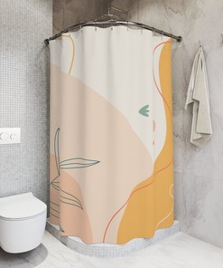 Boho Abstract Flowers Shower Curtain, Modern Orange, Lake Designer Curtain, Bath Decor, Minimalist Leaf Home Art