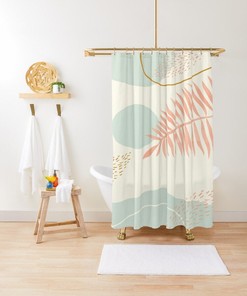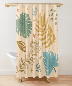 Shower Curtain Boho Botanic, Abstract Patterns, Trendy Shower Curtain, Eco-Friendly Waterproof Abstract Decor