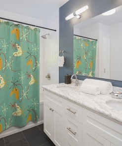 Mid Century Modern Atomic Boomerang Blue Grass Retro Mcm Home Decor Shower Curtain