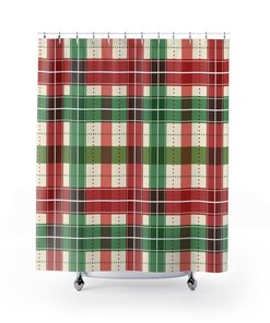 Retro Buffalo Plaid Christmas Modern Shower Curtain, Christmas Gift For Home, Shower Curtain, Retro Bathroom Accessories, Home Gift