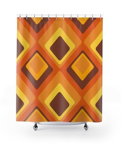 Retro 70’s Shower Curtain, Groovy 60’s 70’s Geometric Hippie Shower Accessory, Retro Bathroom Curtain