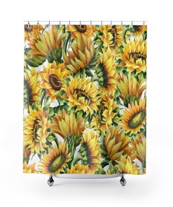 Sunflowers Shower Curtain, Floral Shower Curtain, Flowers Shower Accessory, Botanical Bathroom Curtain
