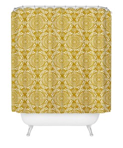 Yellow Shower Curtain, Boho Medallion Geometric Shower Curtain, Bath Curtain, Bathroom Decor