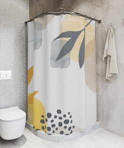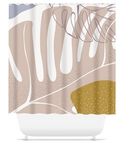Mid-Century Minimalist Abstract Leaf Shower Curtain – Scandi Neutral Tone Abstract Bath Curtain, Contemporary Bath Decor