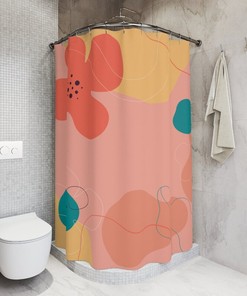 Botanic Shower Curtain, Boho Colorful Curtain, Floral Bathroom Decor, Flowers Mid Century Modern Shower Curtain