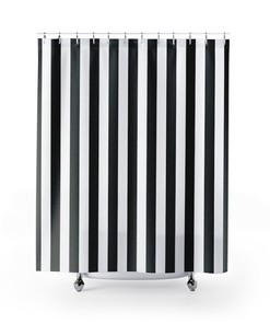 Black And White Striped Shower Curtain For Masculine Bathroom Decor, Housewarming Gift