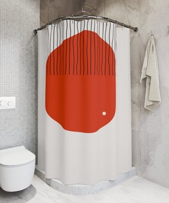 Boho Abstract Red Circle Shower Curtain, Modern Pal Minimal, Lakehouse Design, Bathroom Curtain, Minimalist Home Art