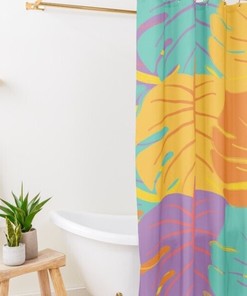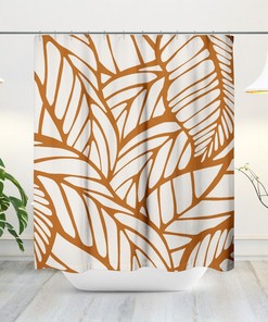 Mid-Century Modern Shower Curtain, Orange, Minimalist Bath Curtain, Abstract, Tropical Leaf, Botanical, Plants, Foliage, Modern Bath Decor