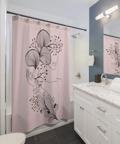 Bright Pink Woman In Flowers Line Art Shower Curtain, Art Deco, Bath Curtain, Bathroom Decoration, Woman’S Body Line Art, Minimalist Art