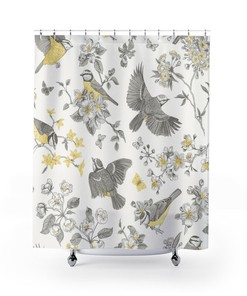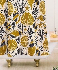 Nautical Shower Curtain, Sea Shell Shower Curtain, Bath Curtain, Fabric Shower Curtain, Yellow Shower Curtain, Beach House Decor