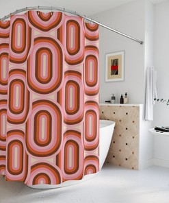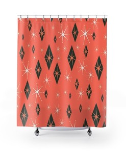 Salmon Mid Century Modern Inspired Shower Curtain, Retro 50’s Bathroom Accessories