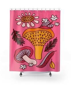 Mushroom Shower Curtain, Groovy 60’s 70’s Hippie Shower Accessory, Mushroom Mid Century Modern Shower Curtain