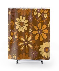 Retro Flowers Shower Curtain, Groovy 60’s 70’s Hippie Shower Accessory, Retro Bathroom Curtain, Tub Curtain