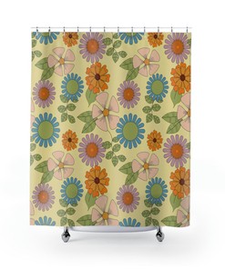 Retro Flowers Shower Curtain, Groovy 60’s 70’s Hippie Shower Accessory