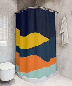 Boho Abstract Waves Shower Curtain, Modern Blue Orange, Lake Designer Curtain, Bathroom Curtain, Decoration