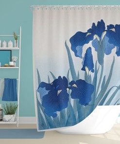 Boho Flowers Shower Curtain Vintage Japanese Bathroom Decor Asian Blue Flowers Eco-Friendly Waterproof Zen Curtain