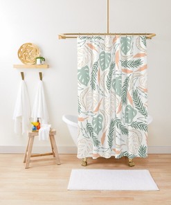 Botanic Shower Curtain, Boho Botanic Curtain, Leaves Bathroom Decor, Flowers, Eco-Friendly Material, Waterproof, Bath Decor