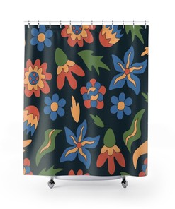 Flowers Shower Curtain, Groovy 60’s 70’s Hippie Shower Accessory, Retro Bathroom Curtain