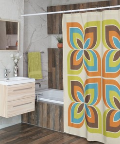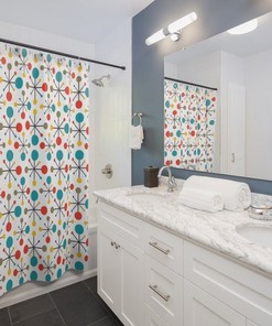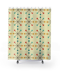 Mid Century Modern Shower Curtains, Mcm Shower Accessory, Retro Bathroom Curtain