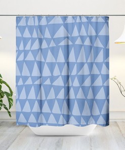 Mid-Century Blue Minimalist Abstract Triangle Shower Curtain – Tribal Zig Zag Bath Curtain, Boho Contemporary Bath Decor