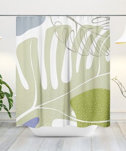 Mid-Century Minimalist Abstract Leaf Shower Curtain – Scandi Muted Green Tone Abstract Bath Curtain, Modern Bath Decor