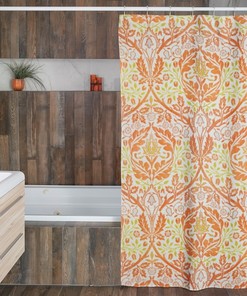 Coral Mid Century Modern Boomerang Pattern Shower Curtain In Durable Polyester for 5 or 6 Atomic Age Bathroom Decor