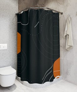 Abstract Art Shower Curtain, Black Orange Retro Shapes, Apartment Bathroom Curtain, Minimalistic Contemporary Art, Minimal Curtain