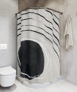 Boho Abstract Circles Shower Curtain, Modern Pal Minimal, Contemporary Japan Design, Japanese Bathroom Curtain, Minimalist Home Art