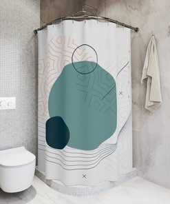 Boho Abstract Circles Shower Curtain, Modern Blue Orange, Lake Designer, Bathroom Curtain, Minimalist Mint Home Art, Decoration