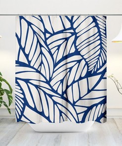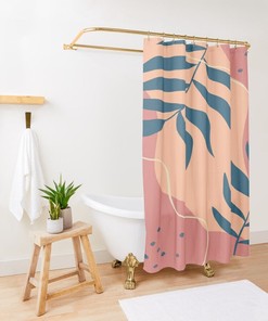 Mid-Century Modern Shower Curtain, Minimalist Bath Curtain, Abstract, Tropical Leaf, Botanical, Plants, Foliage, Modern Bath Decor